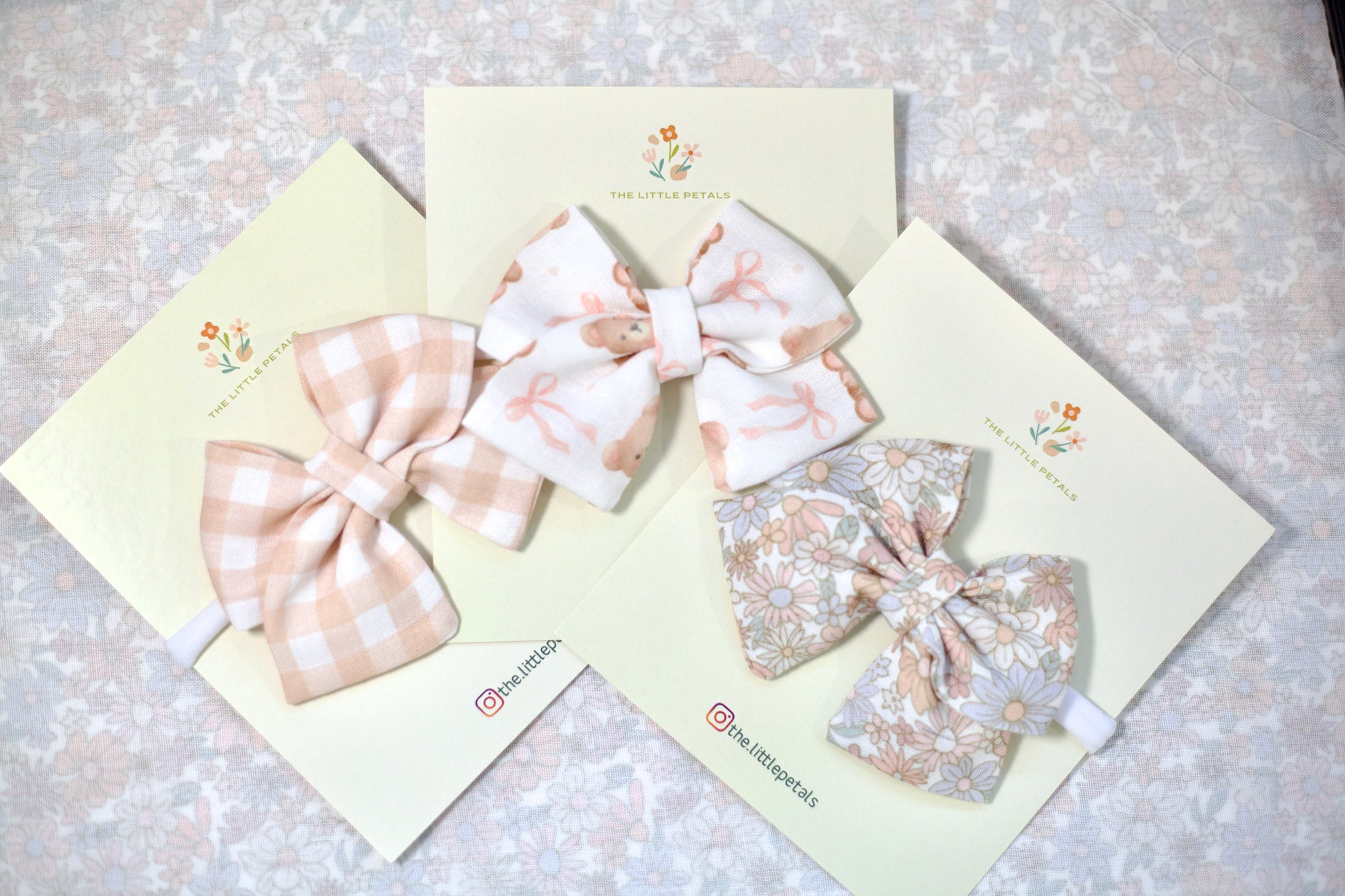 Sweet and timeless, this bow trio is made from soft Bahama linen, designed with the perfect size and shape for babies and toddlers.