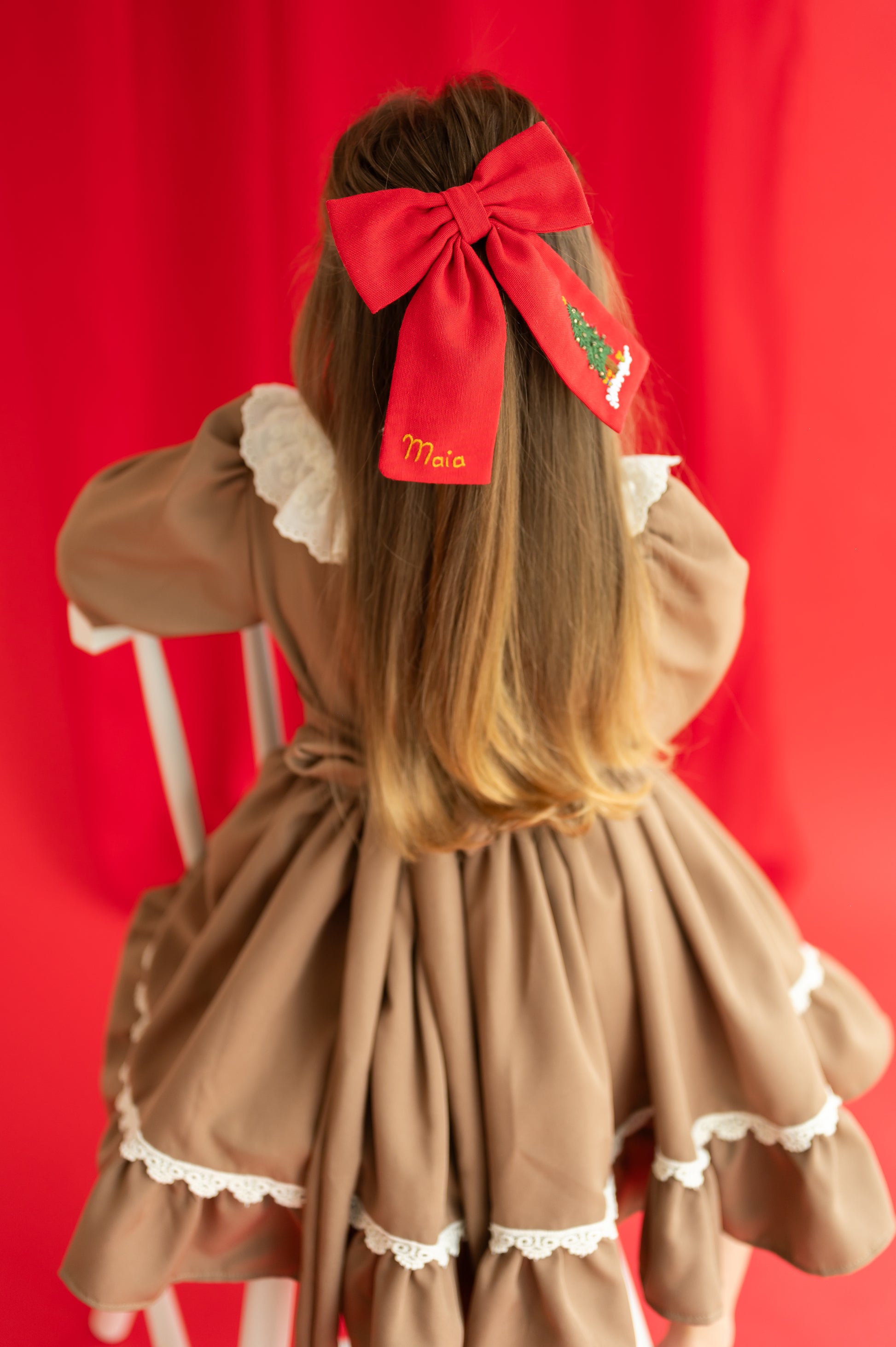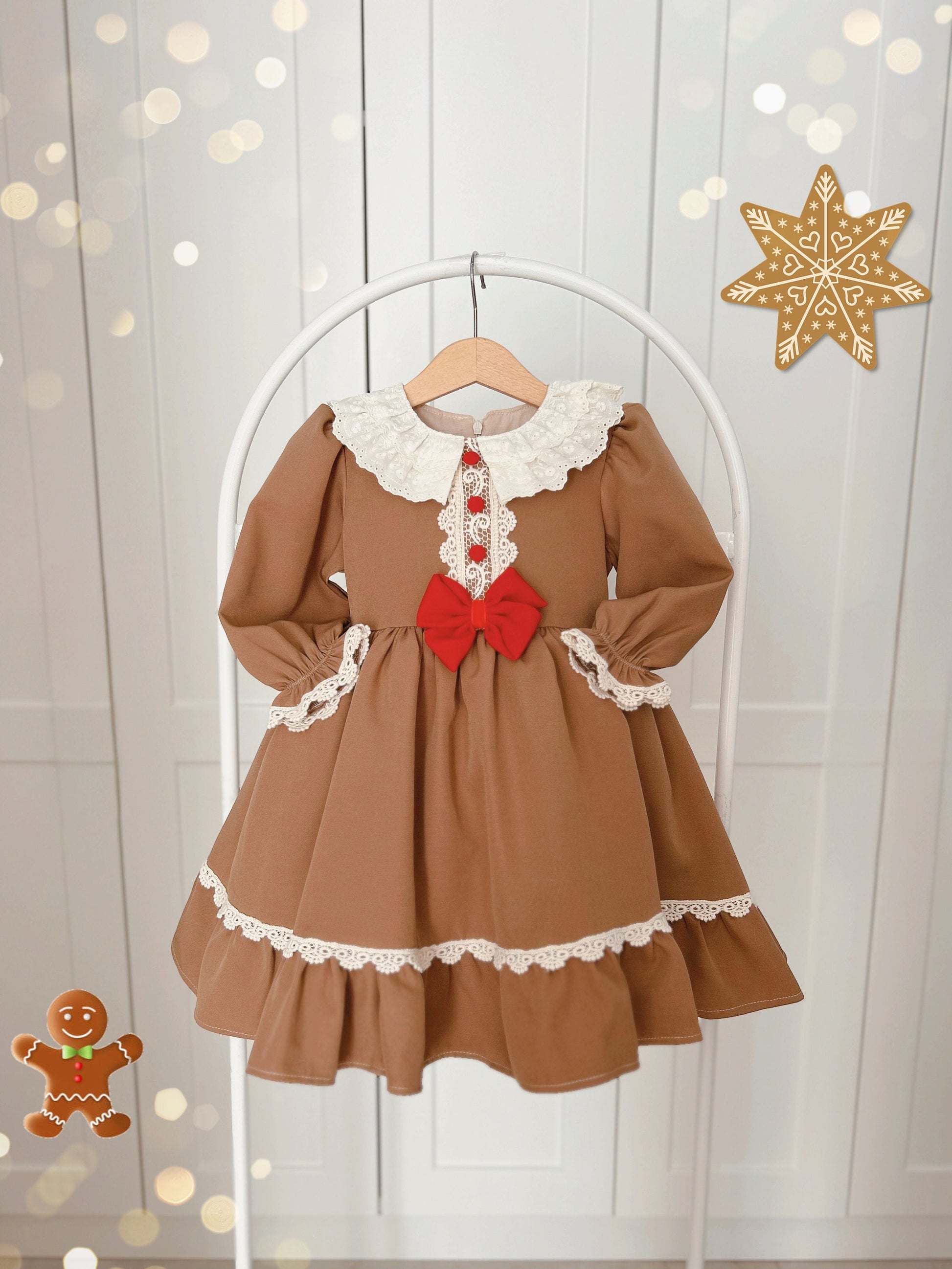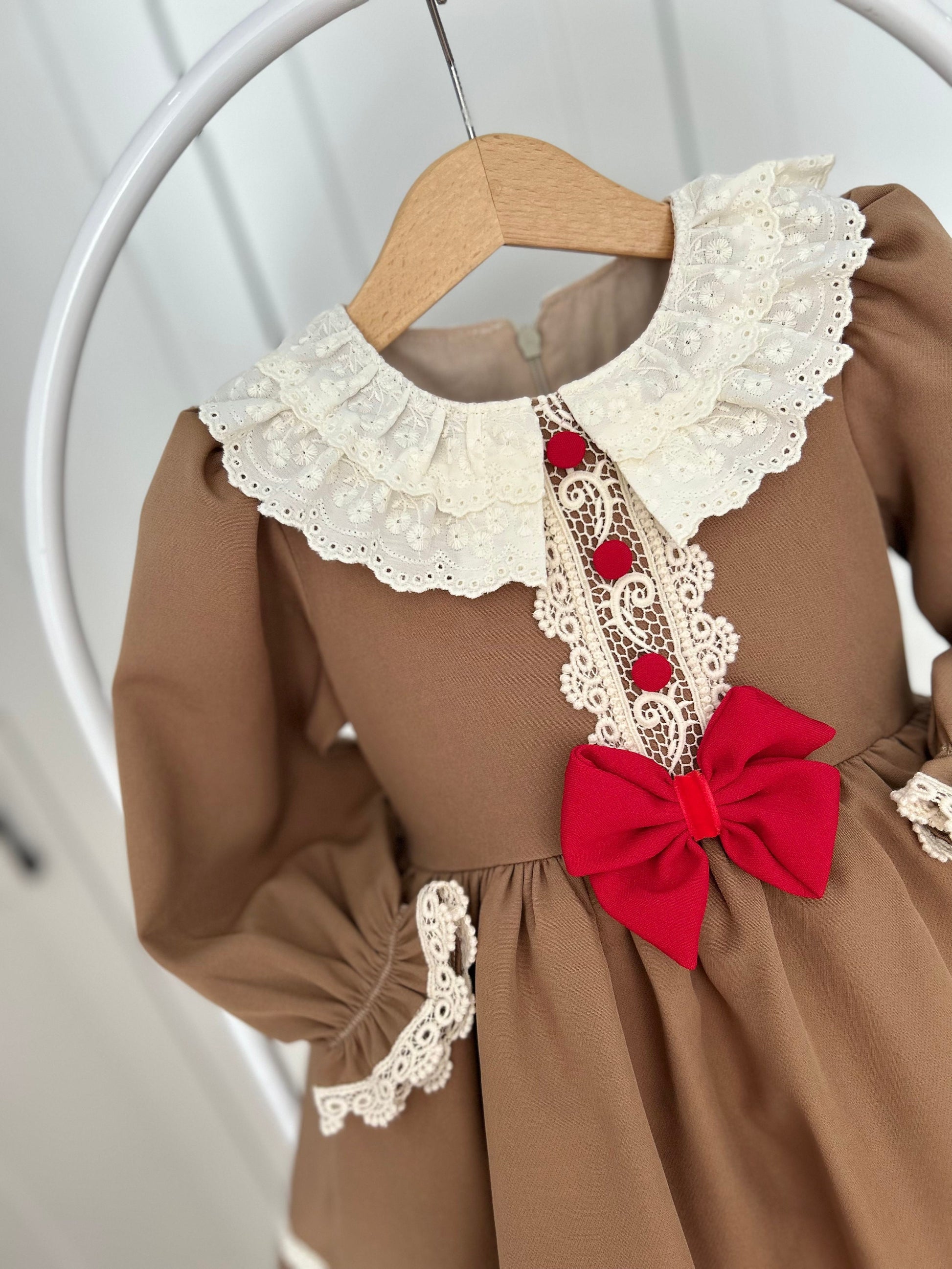 *The long sleeves offer both style and warmth, making it ideal for cooler weather. The dress is adorned with a beautiful cream lace collar, adding a touch of delicate sophistication.