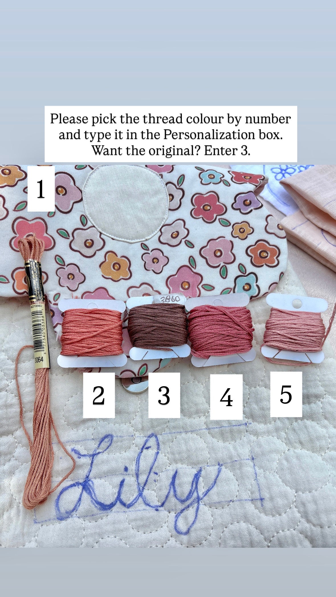 This adorable handmade backpack is crafted from a soft beige quilted fabric featuring subtle flower stitching on the base. The standout feature is the playful flower-shaped flap in a colorful floral print, making it a joyful accessory for little ones.
